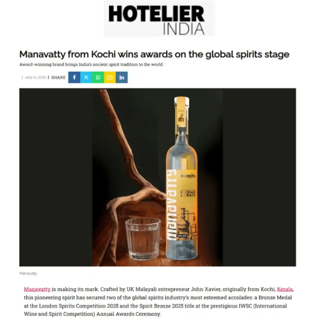Kochi native John Xavier has joined the ranks of Malayalis abroad crafting liquor brands with his beverage brand Manavatty, which offers nostalgia among the Malayali community.